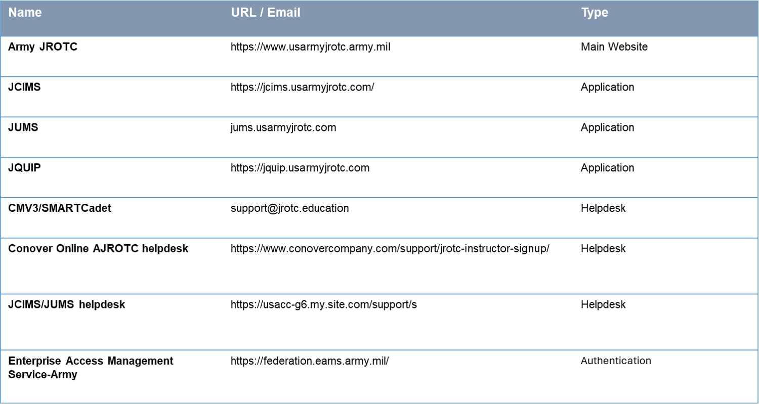 NOTE: To sustain an Army JROTC Program, your school’s IT Department must make the following webpages/applications accessible on your network.